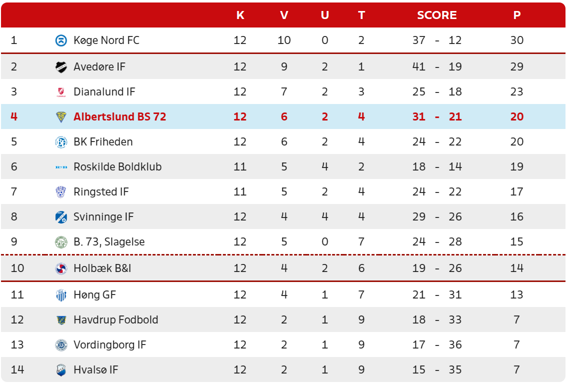 Stillingen efter 12. spillerunde: