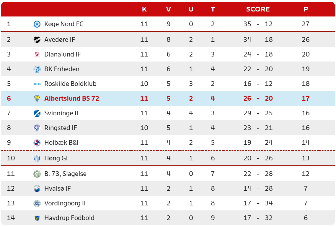 27’: 1-0 Mikkel Madsen (Køge) - assist: Mathias Andersen